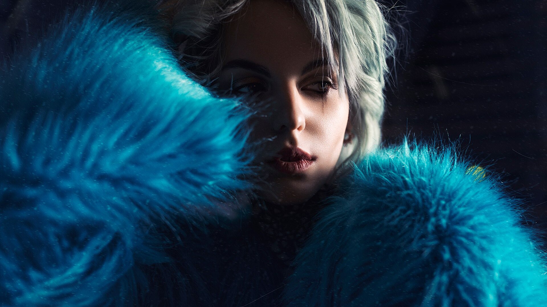सफेद बाल लड़की दूर देख