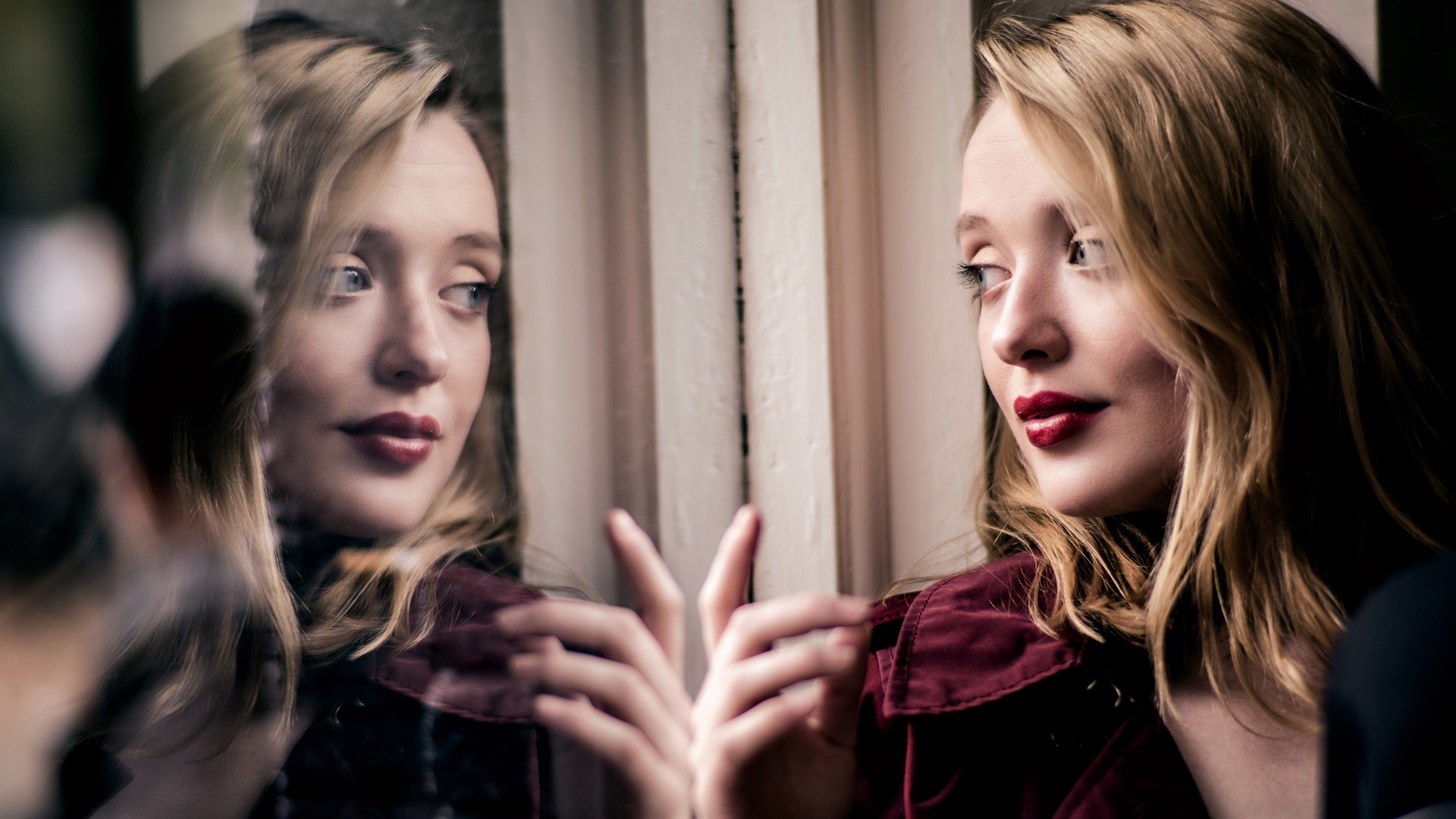 सुनहरे बालों वाली चेहरा लड़की लिपस्टिक
